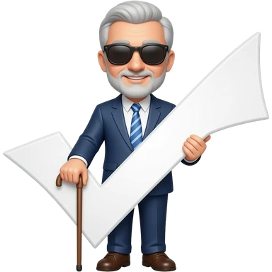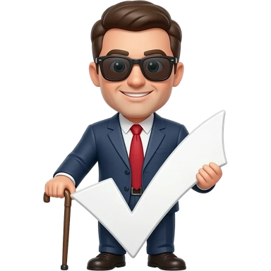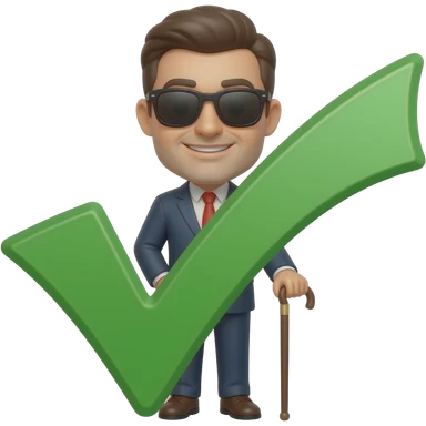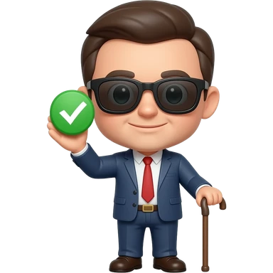 an emoji to represent blind approval of a github pull request, merge the man with cane using sunglasses with a big white checkmark emoji