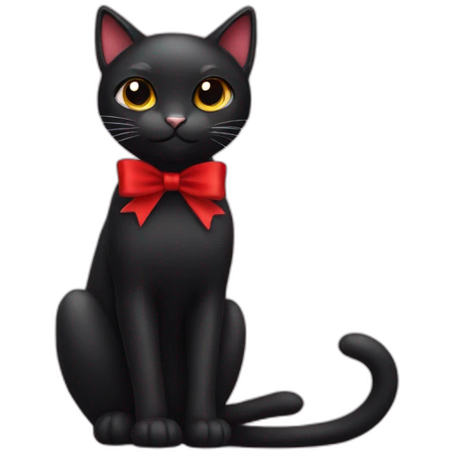 Black cat with brown eyes wearing a red bow on her neck emoji