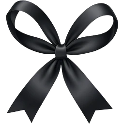 A cute black cat with mole above left side eye smiling with smiley eyes and having a white ribbon at right side of head emoji
