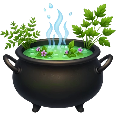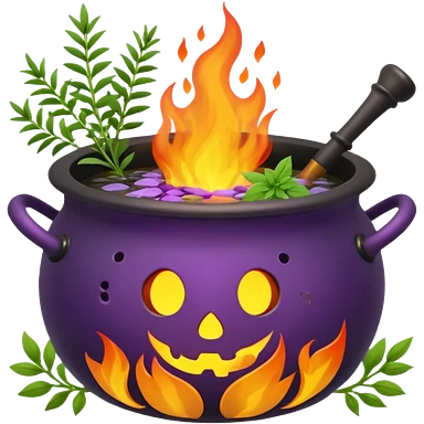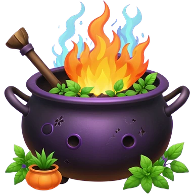 Black cauldron with herbs flowers and fire emoji | AI Emoji Generator