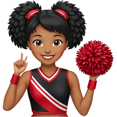Cheerleader with black white and red uniform with tan skin and ponytail with edges pretty long lashes hourglass shape emoji