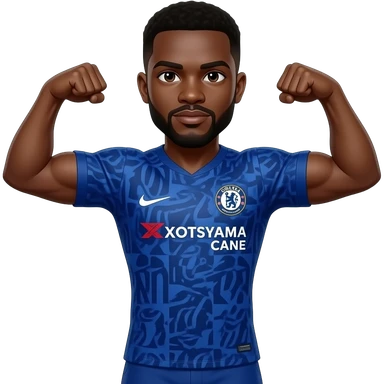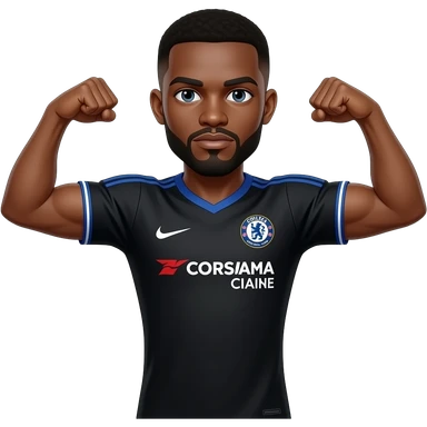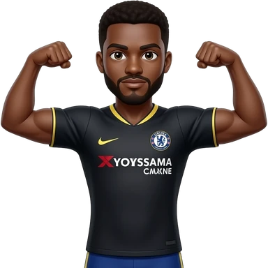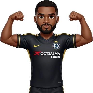 Black man with goatee double arm flex wearing Chelsea fc black jersey emoji