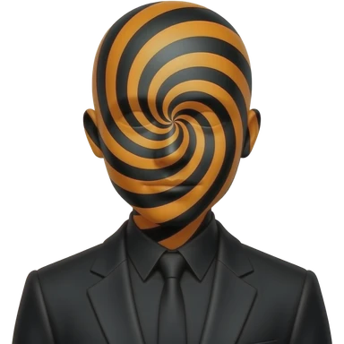 a person with a mask made witch black and orange spirals, the mask covers the face we dont see eyes and mouth and everything. dressed in black, dark mmod emoji