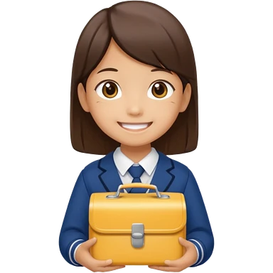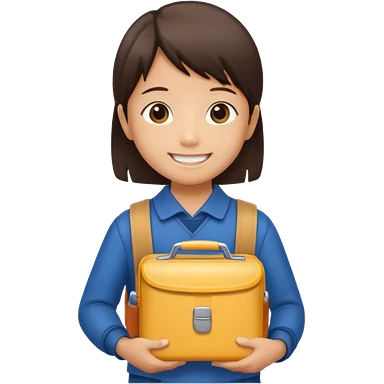 Going down an elevator ready for work with lunchbox and tote bag girl with black long hair emoji
