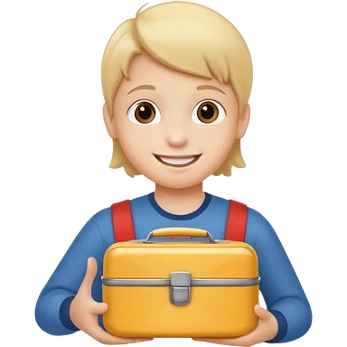 Going down an elevator ready for work with lunchbox and tote bag girl with black hair emoji