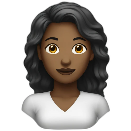 modern clean emoji of a young woman with medium skin tone, long wavy dark brown hair, wearing a black off-shoulder top, soft friendly smile, expressive eyes, warm charming style, relaxed confident vibe, neutral light color background emoji