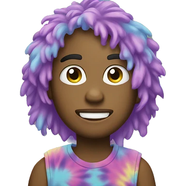 white girl with purple hair and cat ears and a blue-green tye dye shirt emoji