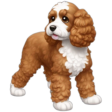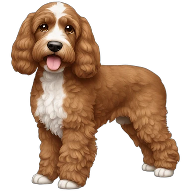 Reddish light brown cockapoo with white patch on chin full body emoji