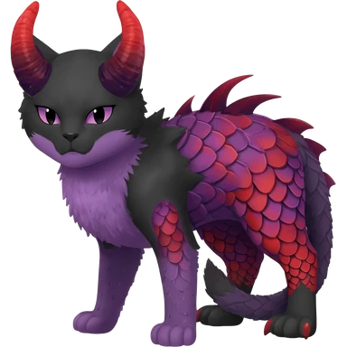 Black horned vampiric edgy demon-Noivern-Noibat-Purloin-Torracat-Lykoi-Caracal-cat-Fakemon-fusion-hybrid-creature with violet and red scale markings emoji