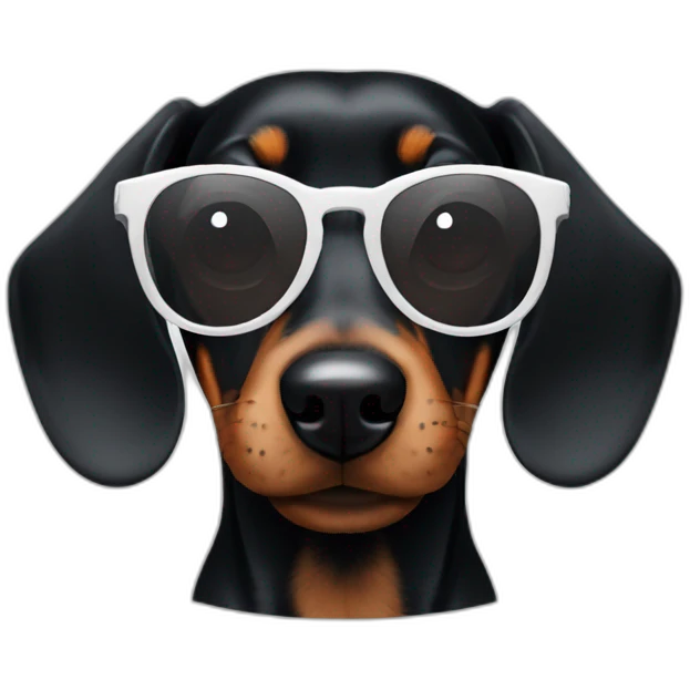 black Dachshund dog face with white rounded sunglasses emoji | AI Emoji Generator