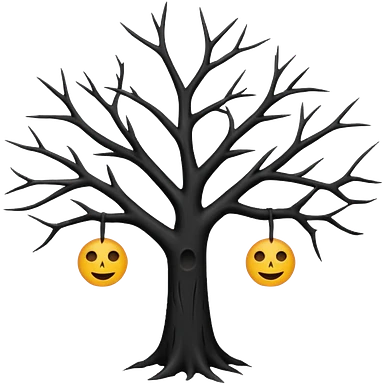 black dead tree silhouette, leafless, minimal style, few branches, simple shape, no background emoji | AI Emoji Generator