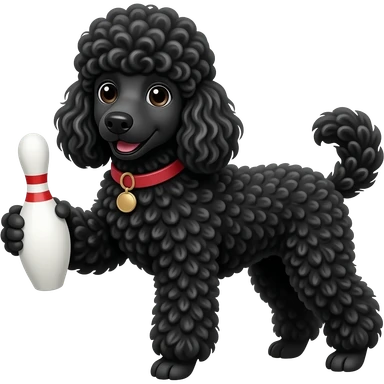 black poodle dog holding bowling pin emoji