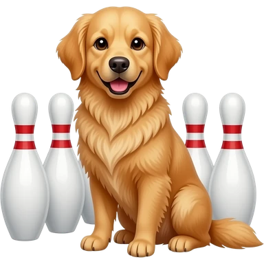 golden retriever dog with bowling pins emoji