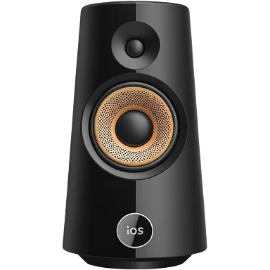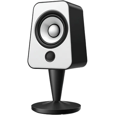 Single simple black desktop speaker, one round white cone with black center, boxy shape, clean white background, product photo. emoji
