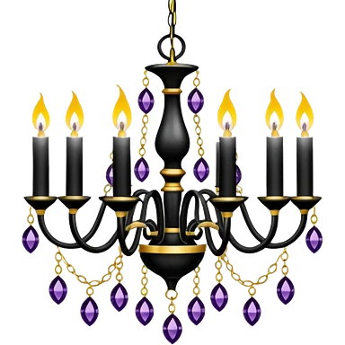Luxurious black and white chandelier with gold and amethyst crystals emoji