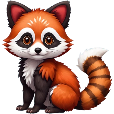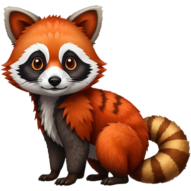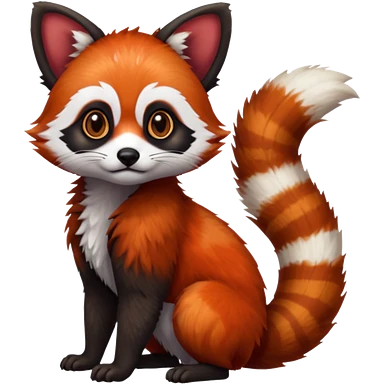 Black-eared Realistic patterned speckled flurry scaly 4-legged quadrupedal Red-Panda-Munchkin-Kitten-Lemur-Raccoon-Dog-Red-Fox-animal-fusion-hybrid, Full body emoji | AI Emoji Generator