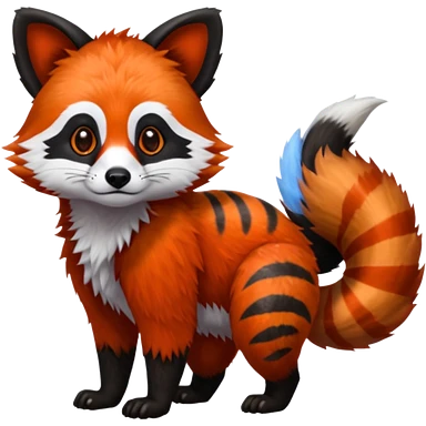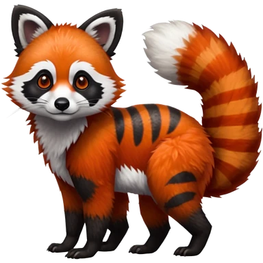 Realistic furry fuzzy scaly 4-legged quadrupedal Red-Panda-Lemur-Raccoon-Dog-Red-Fox-animal-fusion-hybrid, Full body emoji