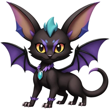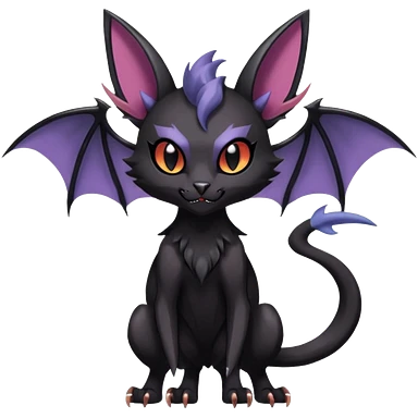 Black edgy Noivern-Noibat-Purloin-Torracat-Lykoi-Caracal-cat-Fakemon-fusion-hybrid-creature emoji