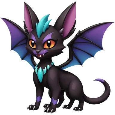 Black and cyan edgy Noivern-Noibat-Purloin-Torracat-Lykoi-Caracal-cat-Fakemon-fusion-hybrid-creature emoji