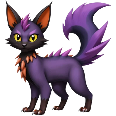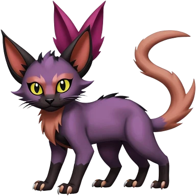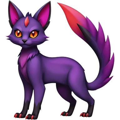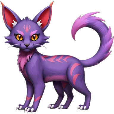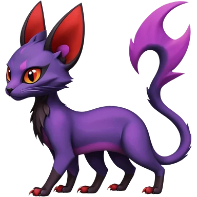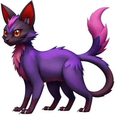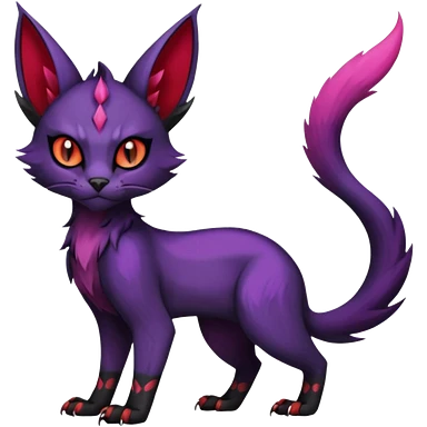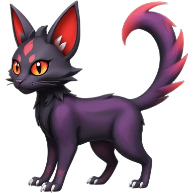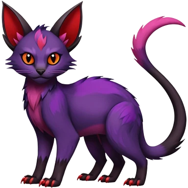 Black edgy Noivern-Noibat-Purloin-Torracat-Lykoi-Caracal-cat-Fakemon-fusion-hybrid-creature with violet and red scale markings emoji