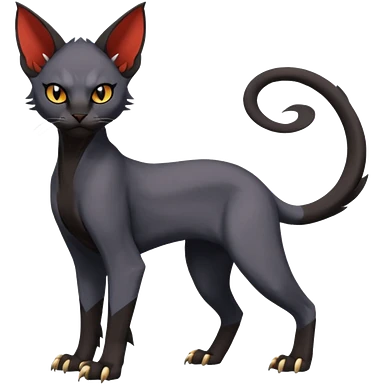 Black edgy Noivern-Litten-Sphynx-Lykoi-Caracal-cat-Fakemon full-body emoji