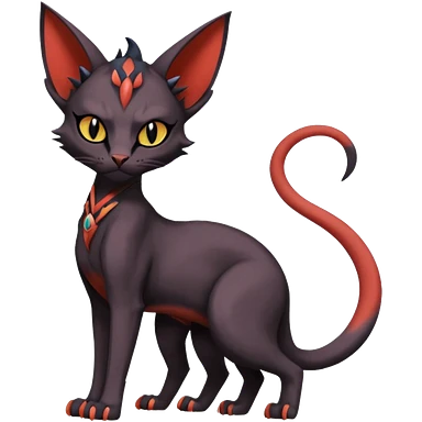 Black edgy Noivern-Zorua-Litten-Sphynx-Lykoi-Caracal-cat-Fakemon full-body emoji