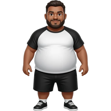 Fat black man wearing black and white standing emoji like 🧍 but chubby and funny emoji