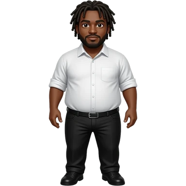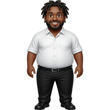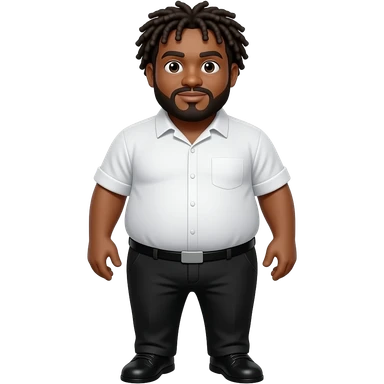 Fat black man wearing black pants and white shirt and have a Douglas and have a dread hairstyle standing emoji like 🧍 but chubby emoji