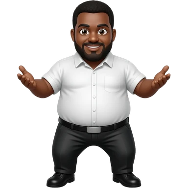 Fat black man wearing black pants and white shirt and have a Douglas standing emoji like 🧍 but chubby and funny emoji