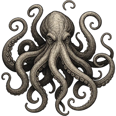 black fierce kraken, bold and menacing, stylized as a dramatic sea monster, dynamic and detailed illustration emoji