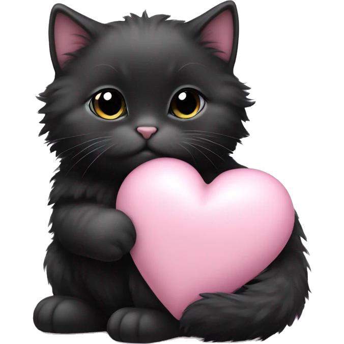 black fluffy fat kitten holding pale pink heart emoji | AI Emoji Generator