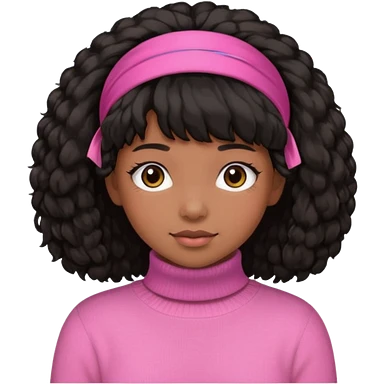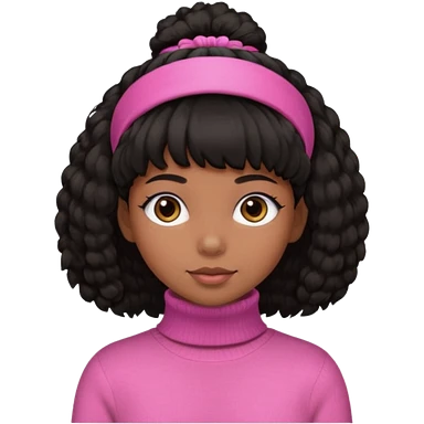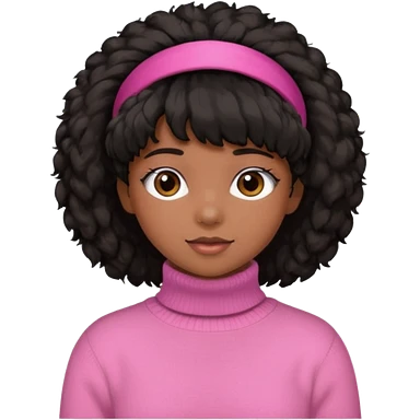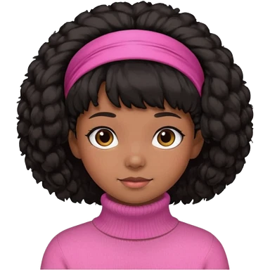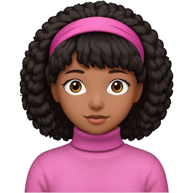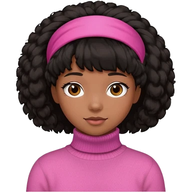 black fluffy haired girl with pink turtleneck sweater and pink hair band emoji | AI Emoji Generator