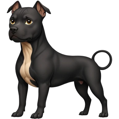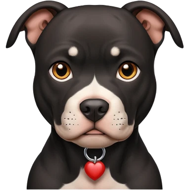 Black adult pitbull with pink mark on upper nose, with a thin white line from nose to forehead emoji