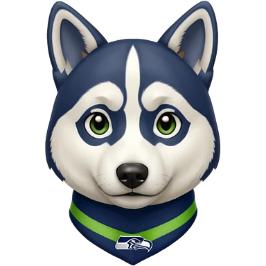 Black white husky with floppy ears Seattle Seahawks gear emoji
