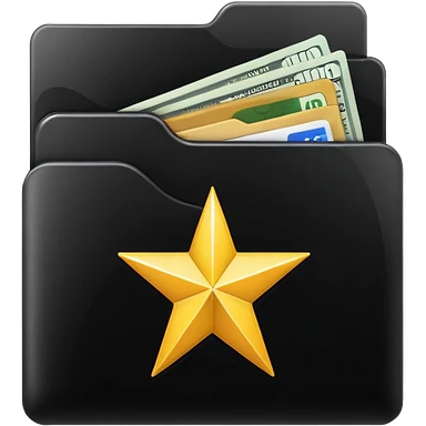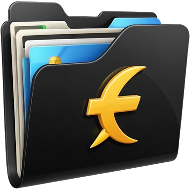 A minimal emoji-style icon of a matte black folder, slightly open, with a simple white or gold finance logo on the front symbolizing growth, stability, and money management, clean lines, subtle shading, and a professional, organized vibe. emoji