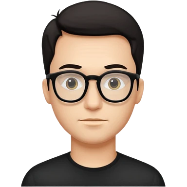 Pale skin, Blackhair, girl, thick black frame glasses, black emoji