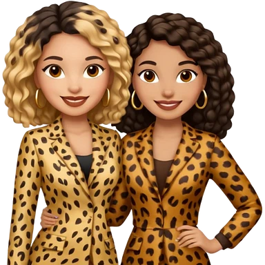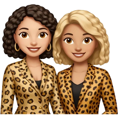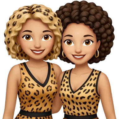 Latina woman with black hair chubby and black woman with blonde hair slim thick in cheetah top sexy emoji