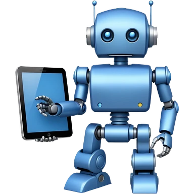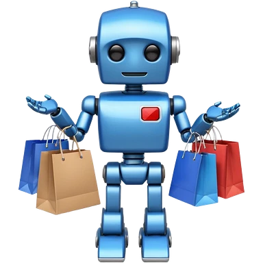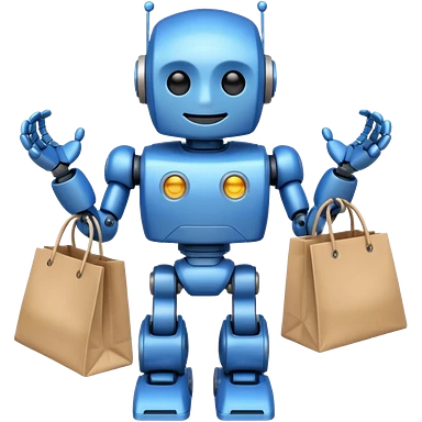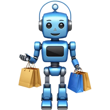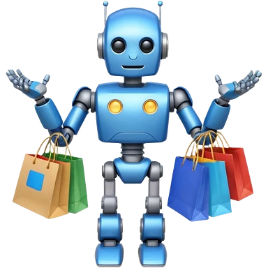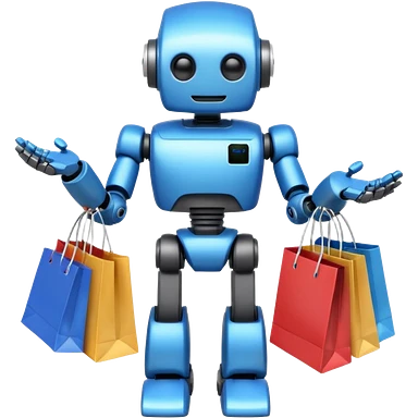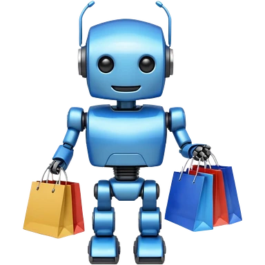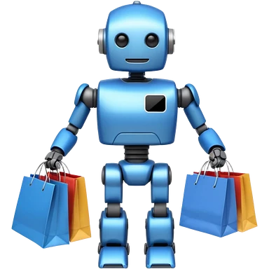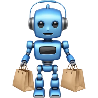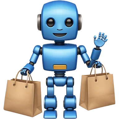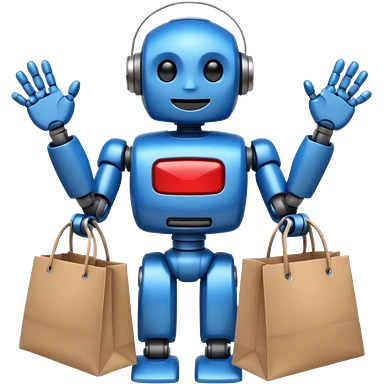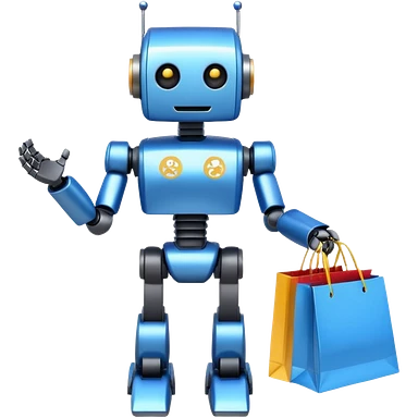black friday robot with blue and metalic colours with bags in his hands smiling emoji | AI Emoji Generator