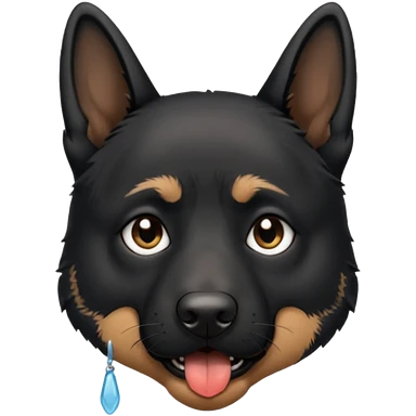All black German shepherd with glitter sad face emoji