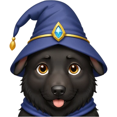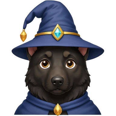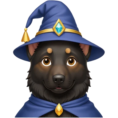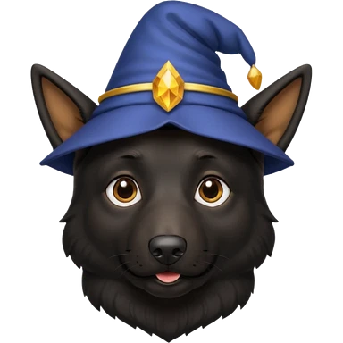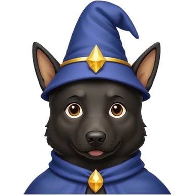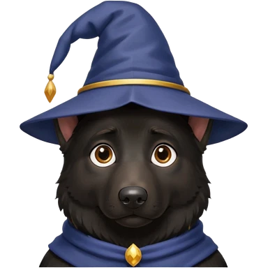 all black german shepherd face wearing a wizard hat emoji