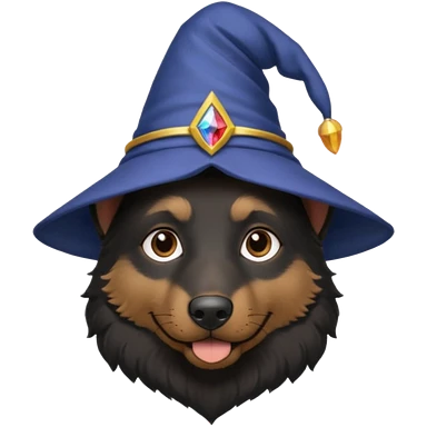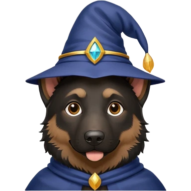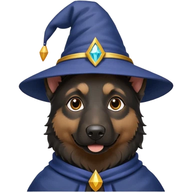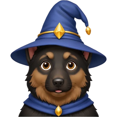 black german shepherd face wearing a wizard hat emoji | AI Emoji Generator