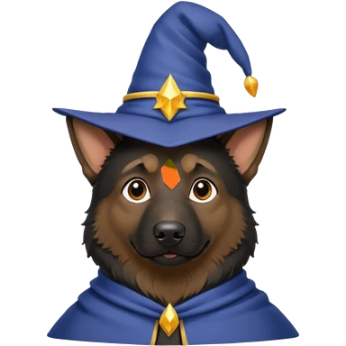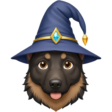 black german shepherd face wearing a wizard hat emoji