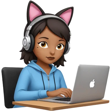 black girl who works remotely through a laptop with cat ear headphones emoji