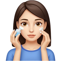 White girl with long black hair applying face mask, self care skincare routine emoji