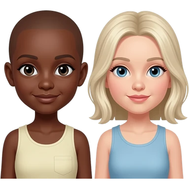 Black girl and white girl together. Black girl has almost bald hair emoji