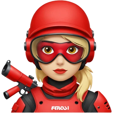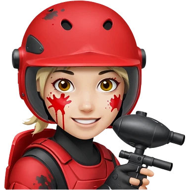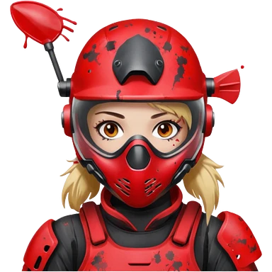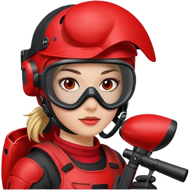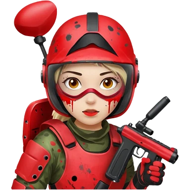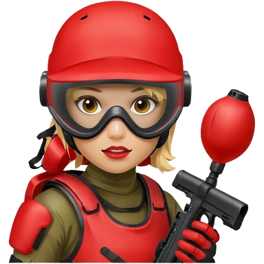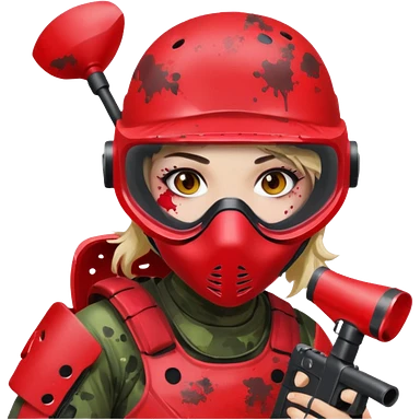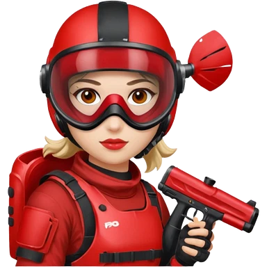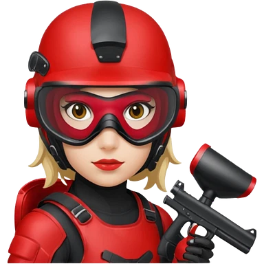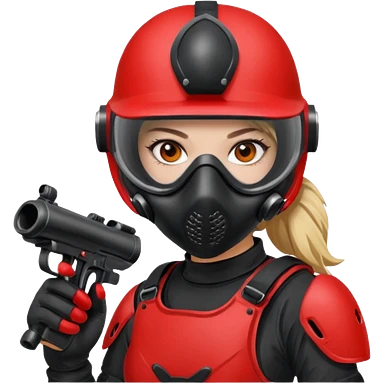 girl playing paintball with red paintball gear and only face emoji