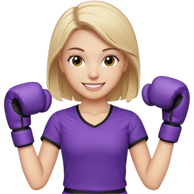 a white girl in purple gear kickboxing smiling with a full shirt on emoji