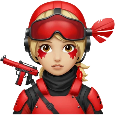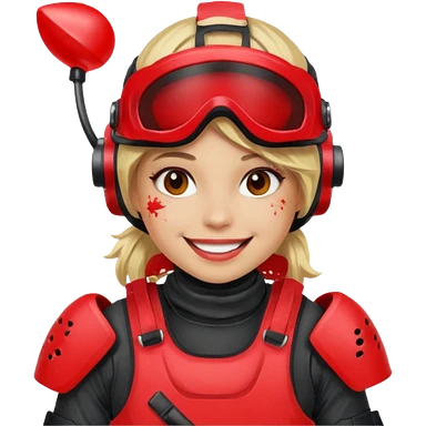 blond girl playing paintball with red paintball face gear emoji