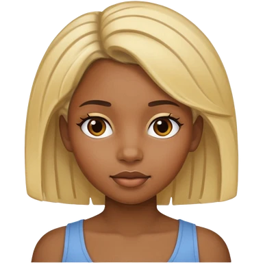 black girl with brown eyes with straight long black hair with a side part. holding a female white cat with green eyes emoji