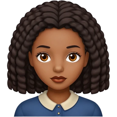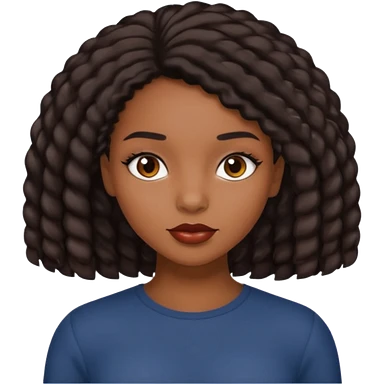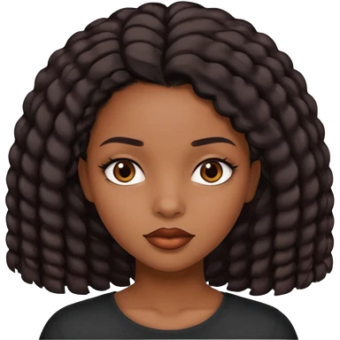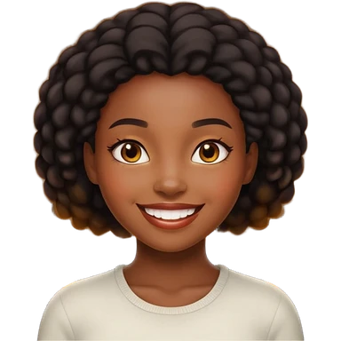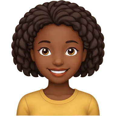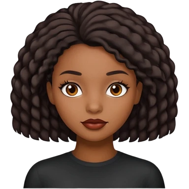 Black girl, cabelo cacheado curto, com os olhos castanhos escuro, lábios médio emoji